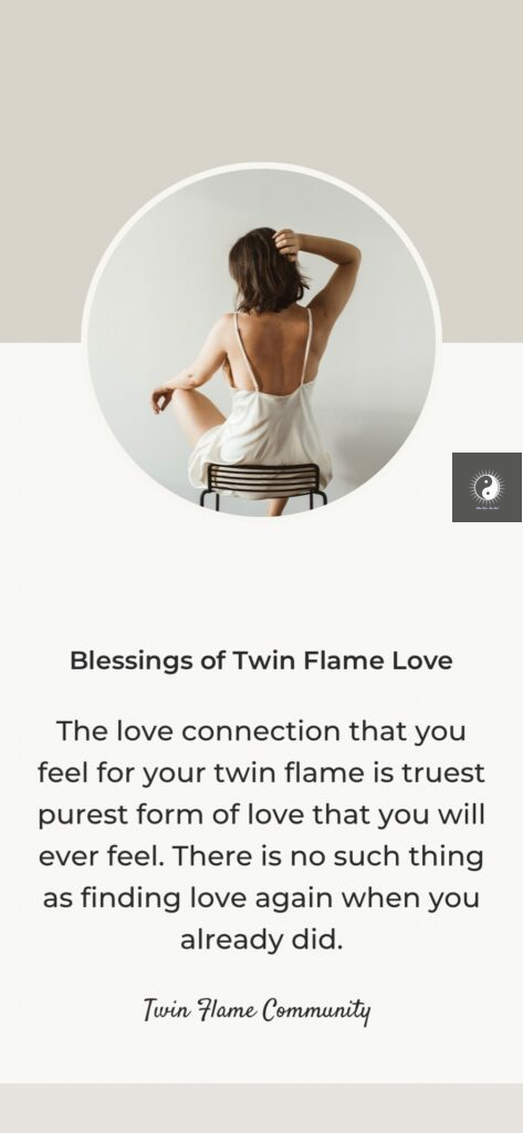 When you meet a Twin flame, you know right away that your search is over. You relax because you know that no one will ever love you as a Twin Flame does.